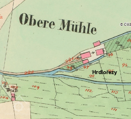 Dne 25. dubna 1582 dává pan purkmistr a rada Starého Města pražského povolení Martinovi Fialovi, dědicům a budoucím jeho ku stavbě mlejna na dvě kola na místě pustém nad vsí Hrdložřezy, 83 loket zdéli a 33 loket šíře, k jmění držení a dědičnému užívání.