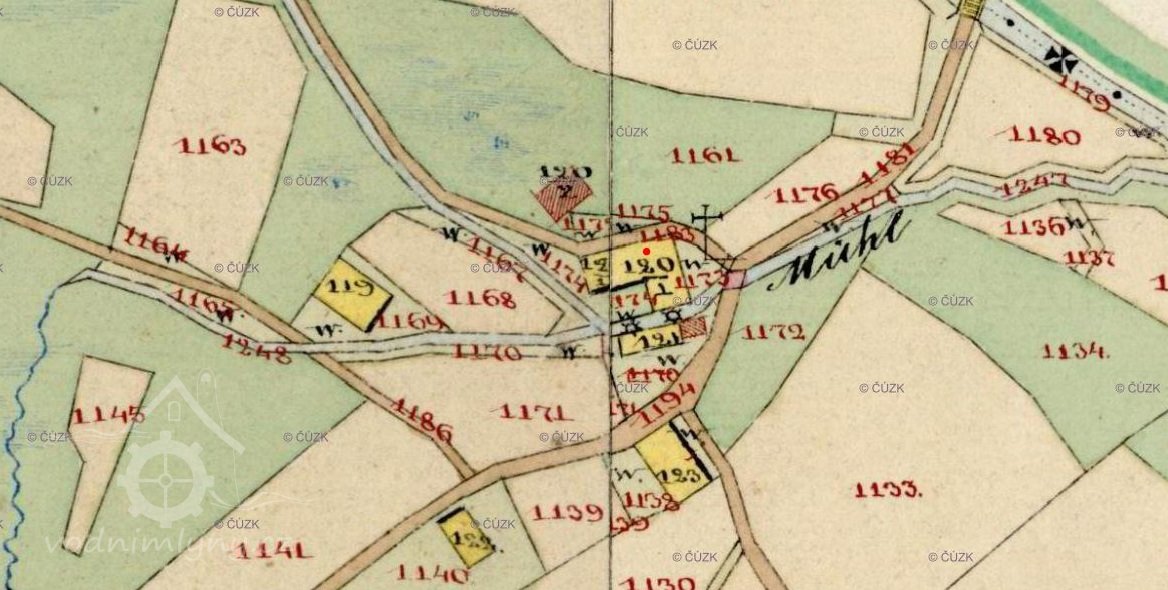 Popis1930: 1 kolo na svrchní vodu, průtok 0,064 m3/s, spád 4,5 m, výkon 2,5 HP