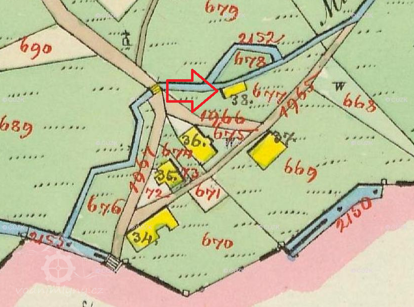Popis1930: 1 kolo na svrchní vodu, průtok 0,160 m3/s, spád 4,75 m, výkon 6,6 HP
