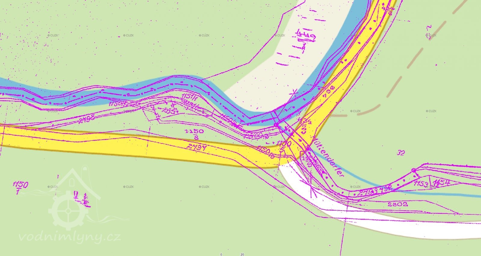 PopisÚdajně kolo na spodní vodu.
