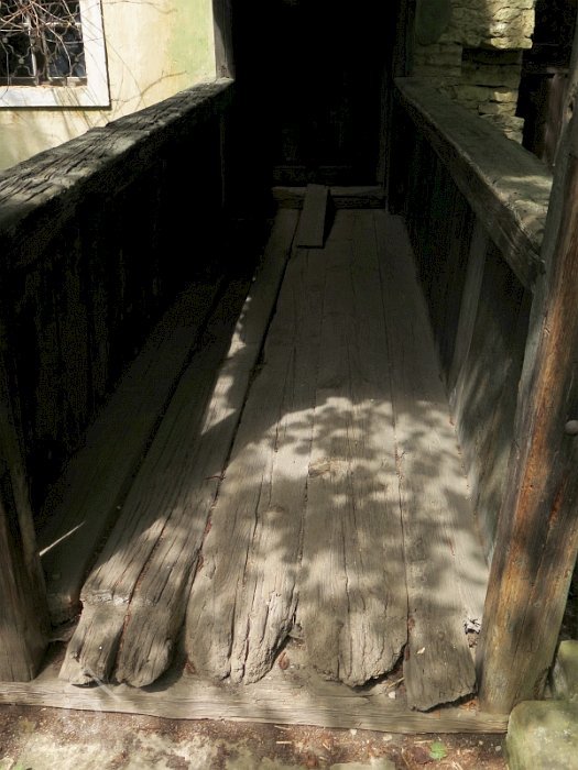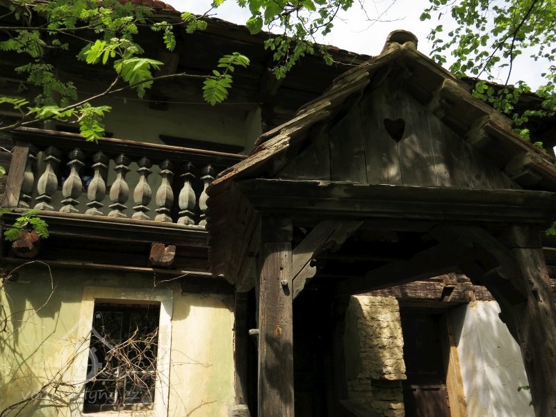 Lidová architektura, roubené patro na zděném přízemí.