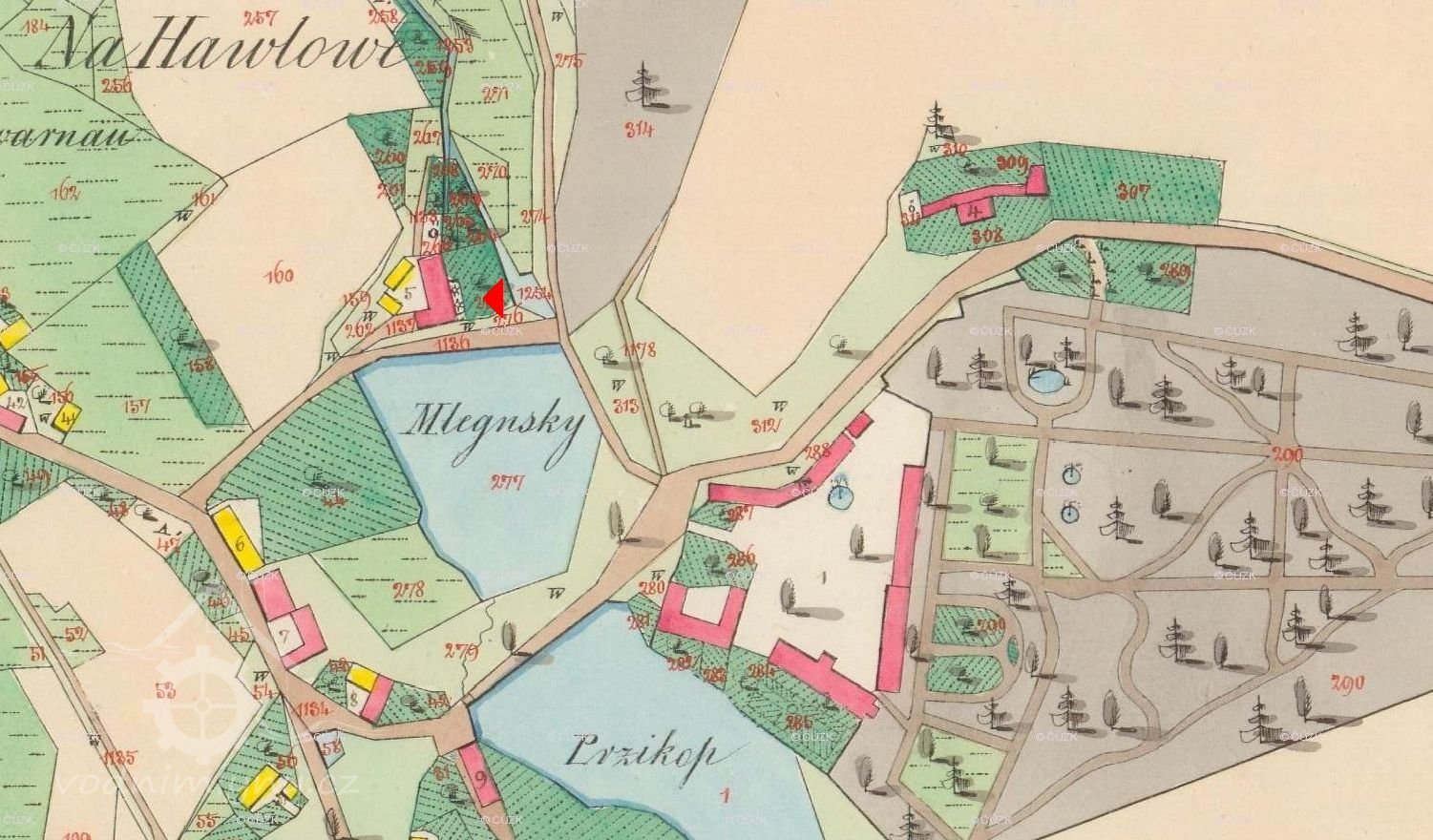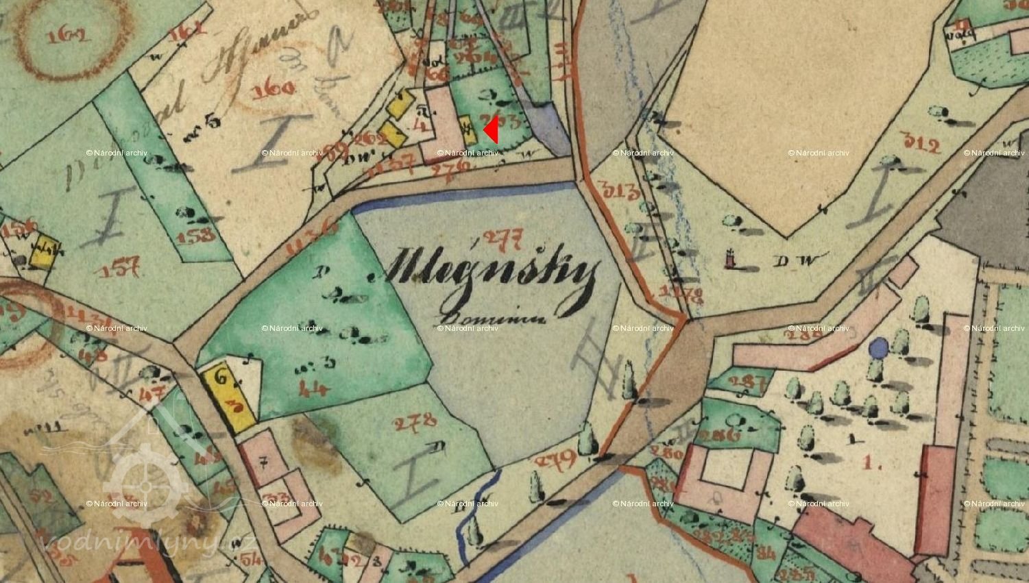 Voda šla pravděpodobně z Mlýnského rybníka rourou, před níž bylo stavidlo, rovnou do žlabu a na mlýnské kolo.