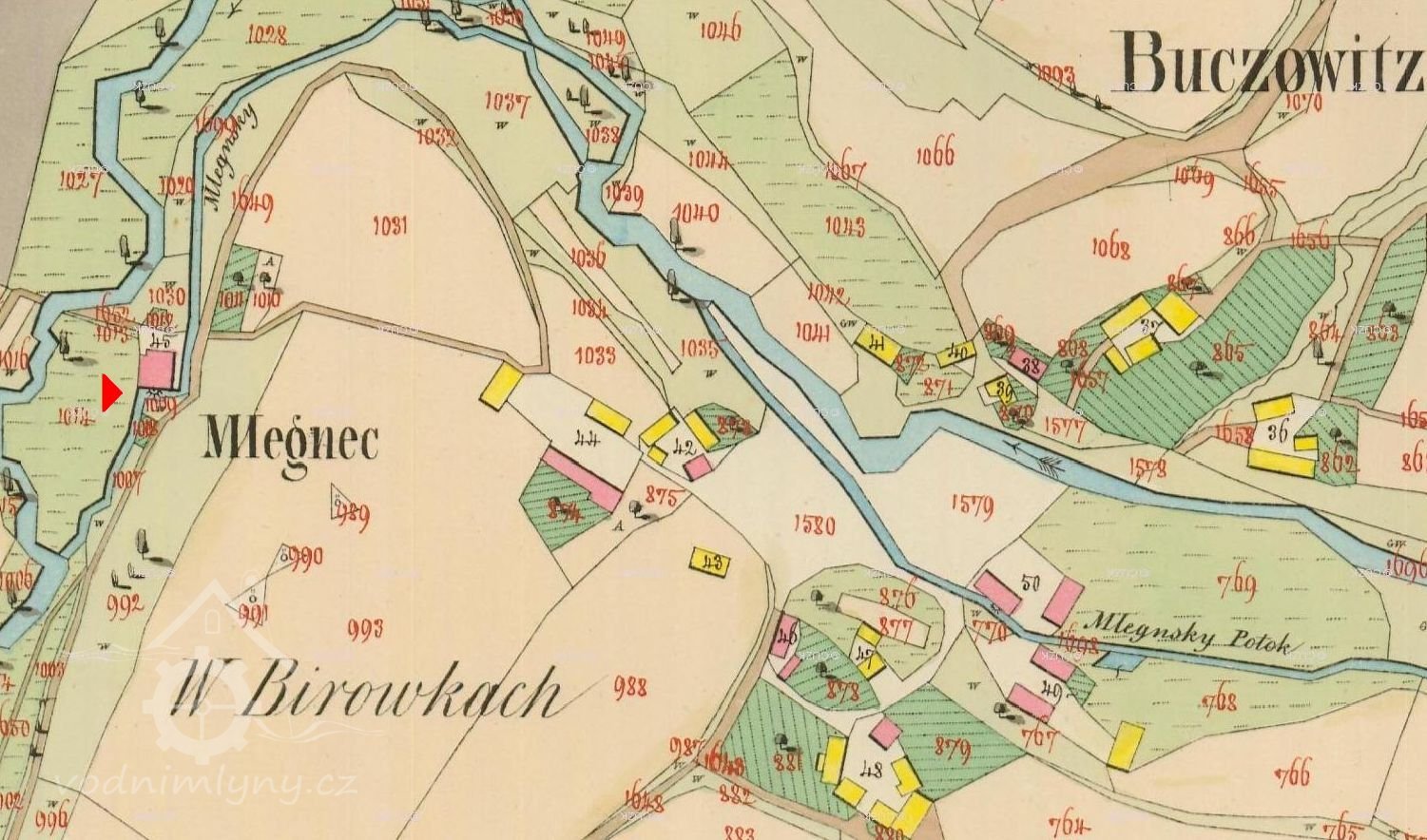 Vzhledem k velkému počtu mlýnů na potoce Mastníku, ve všech jeho částech, je velmi obtížné hledání i v matrikách. V obci Bučovice byly mlýny dva. O mlýnu Mlýnec je prokazatelný zápis z roku 1772 i když mlýn to mohl být i dříve, jak vyplývá z I. vojenského mapování. Stejně tak není jasné, kdy mlýn ukončil svoji činnost. V současnosti je mlýn v podobě, která odpovídá konci provozu.
