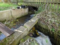 Voda šla od kamenného jezu na potoce Mastníku, na konci obce Bučovice, náhonem dlouhým cca 150 m. Náhon končil při posledním provozu betonovým korytem se dvěma stavidly a to před žlabem na mlýnské kolo a odpouštěcím stavidlem do jalové strouhy.
