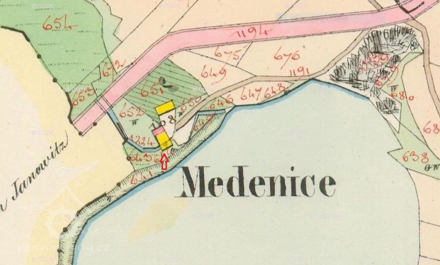 Do rybníku Medenického o výměře 16 jiter 632 sáhů přitéká voda z hořejšího rybníka Hlubokolánského čili Turkovce, do kterého zase přitéká z rybníka Nedovedlo a z okolních pozemků.