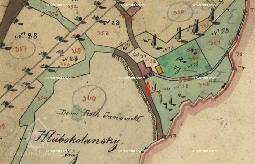 V roce 1838 je ve stabilním katastru jako majitel uváděn Václav Král. Mlýn tehdy spadal pod obec Vilémovice a patřily k němu rozsáhlé pozemky po obou stranách silnice od Lán až po hranice katastru u rybníka Medenice. Rybník nad mlýnem se tehdy nazýval Hlubokolánský a patřil pod Červené Janovice.