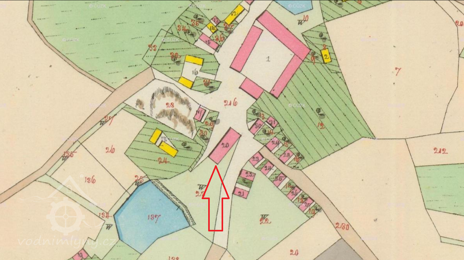 Popis1930: 1 kolo na svrchní vodu, hltnost 0,05 m3/s, spád 6 m, výkon 4,78 HP