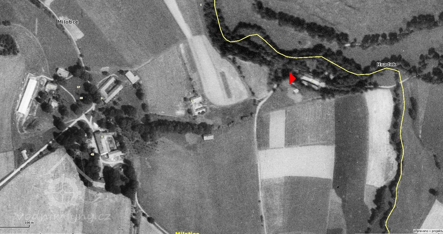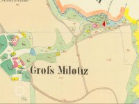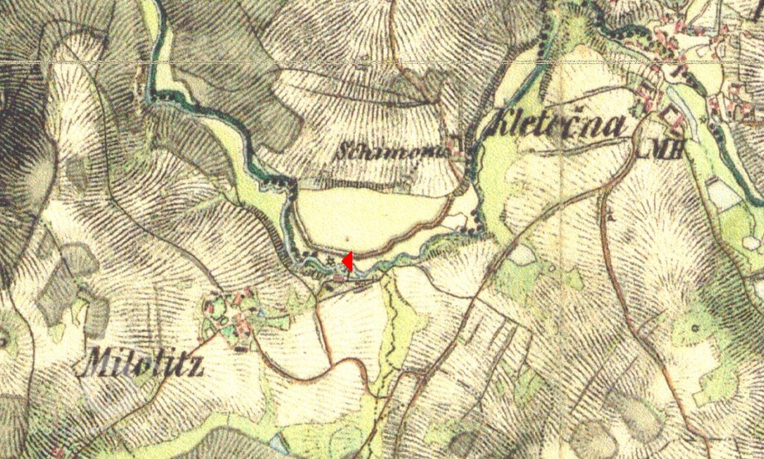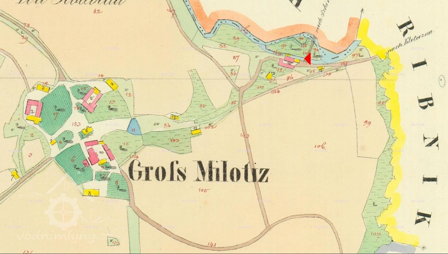 Zakoupil jsem mlýn čp.9 v Miloticích u Dechtář po vyhoření a znovu jej zřídil. V mlýně tom jest 1 české složení a 1 francouzský kámen, pak krupník a čistící stroje. Dále chci zřídit tamtéž šindelku, jakož i chci použíti vodní síly mlýna ku hnaní hospodářské mlátičky a řezačky...Ve mlýně jsou 2 vodní kola na střední vodu, kteráž tak jako vantroky musla býti znovu zřízena.