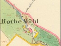 Červený mlýn je vyznačen již na I. vojenském mapování. V současné době je opraven a slouží jako rekreační objekt.