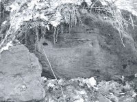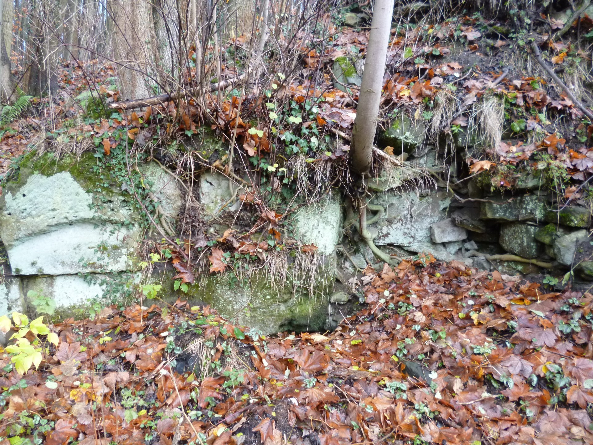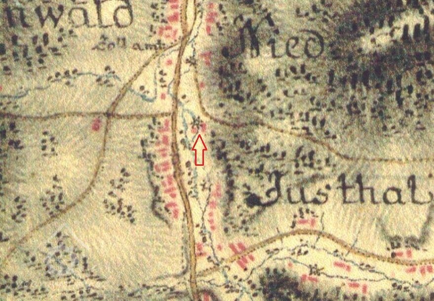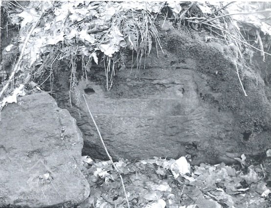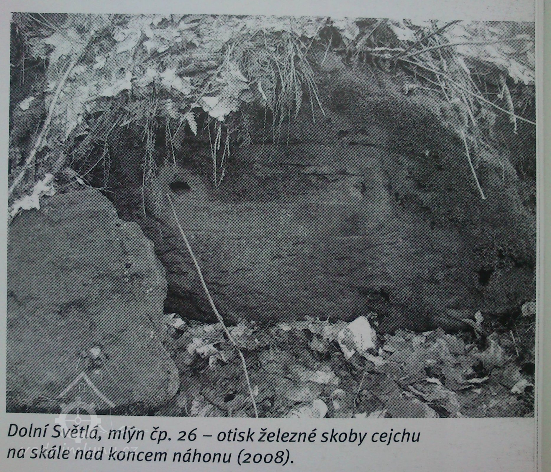 Před zalomením konce náhonu je na přisekané skalní stěně čitelný rámeček pro osazení železné plotny cejchu s otvory pro uchycení. Skoba s nápisem "A.H. 1874" (Anton Hackel) dnes ztracená.