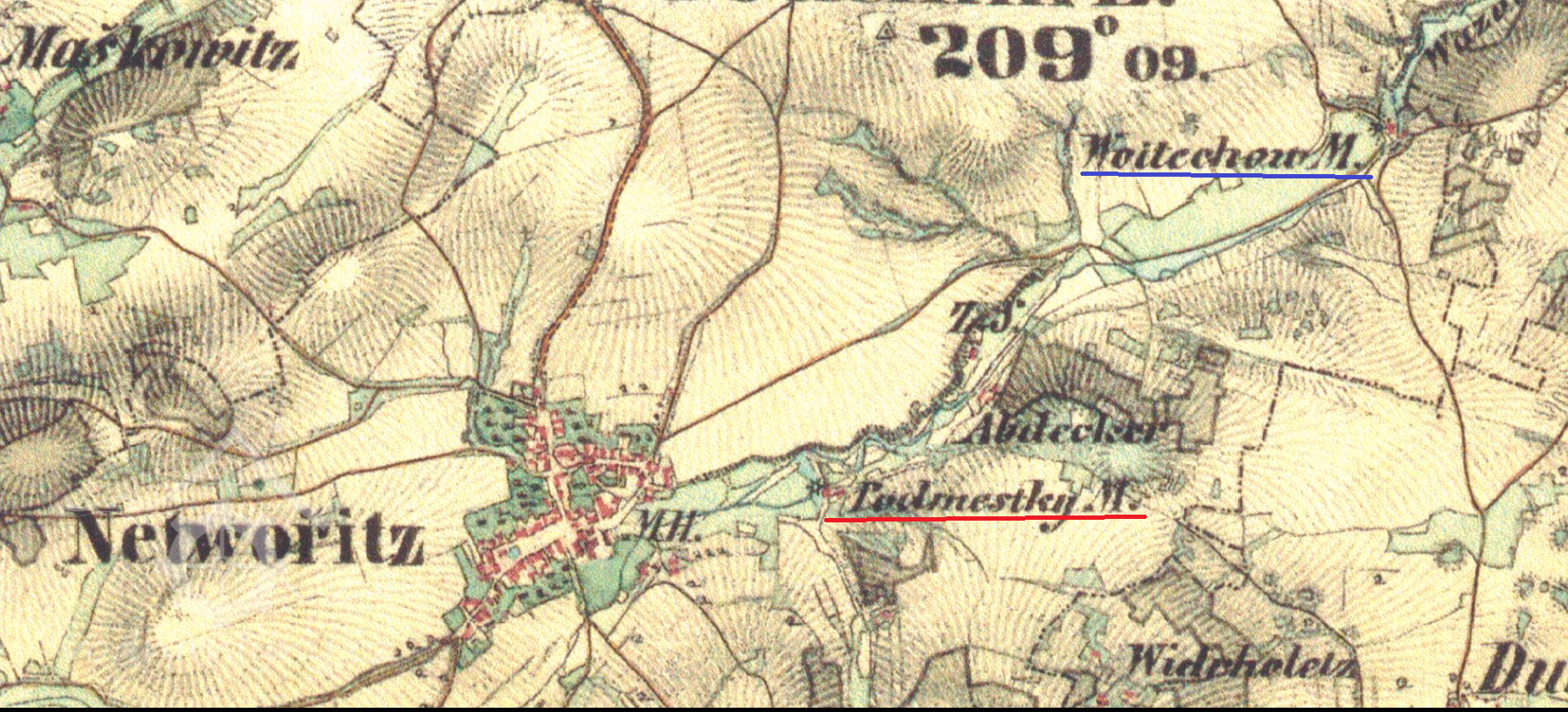 Dne 29. května 1878 píše okresnímu hejtmanství v Benešově vyjádření k žalobě Františka Pecha a Jana Žižky z Netvořic, kteří s ním nesouhlasí v příčině rušení držby potoka č. parc. 1869 u Netvořic: „Jest ovšem pravda, že jsem v místech v žalobě uvedených potok zatarasil, vlastně ani nezatarasil, nýbrž pouze dvouma prknama na sebe postavenýma a na dřevěný práh od jakživa k tomuto měli se tom nalezající umístěnýma zahradil, a vodu na svůj pozemek č. parc. 540 odvedl, a pak jej povodňoval. K tomu mám ode nepouze dle  ustanovení vodního zákona ale i také v následku poměrův mého vlastnictví a vydržení úplné právo. …Dále není pravdy, že žalující mají u svých pozemků kolem potoka naké hráze, kolem těch pozemků nachází se jenom přirozený samorostlý břeh, který si mohou žalující ovšem dle připuštění všeobecného občanského i vodního zákona upevniti, což ale nečinějí, avšak také není pravda, že k hrazení, o které se jedná, se břeh pozemkův podemílá…“