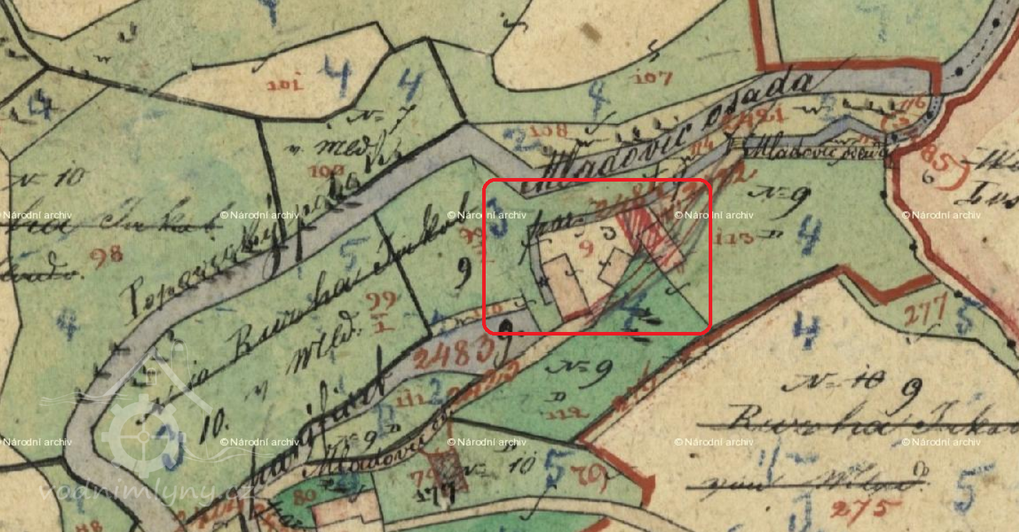 Na rozdíl od většiny mlýnů v okolí neleží Mladovický mlýn, doložený již v Berní rule, pod hrází rybníka (rybník je nade vsí, kdežto mlýn pode vsí), nýbrž má jen malou akumulační nádržku. V současné době přestavěn na bydlení. Mlýnice zbořena.