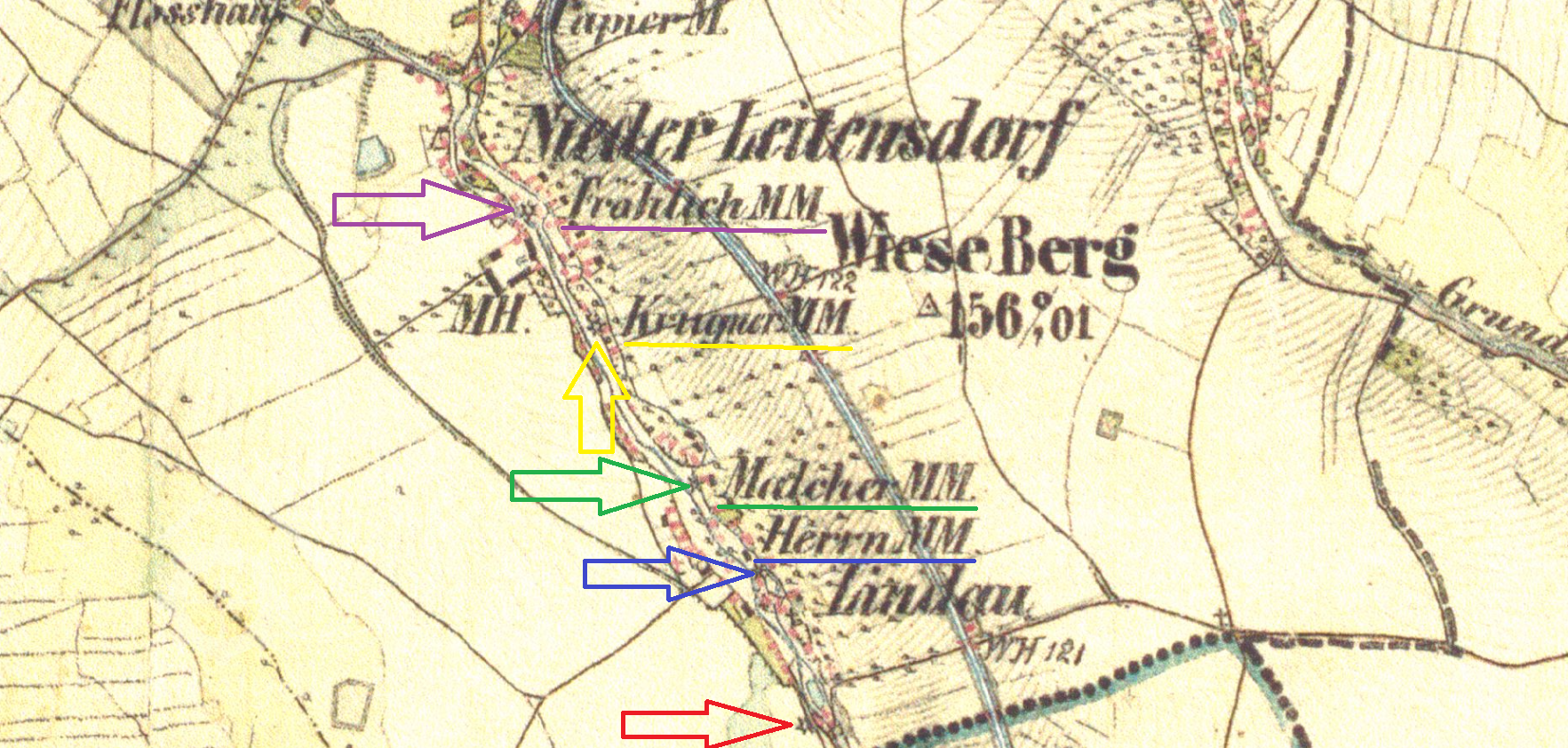 Příjmení mlynářů působících na mlýně: