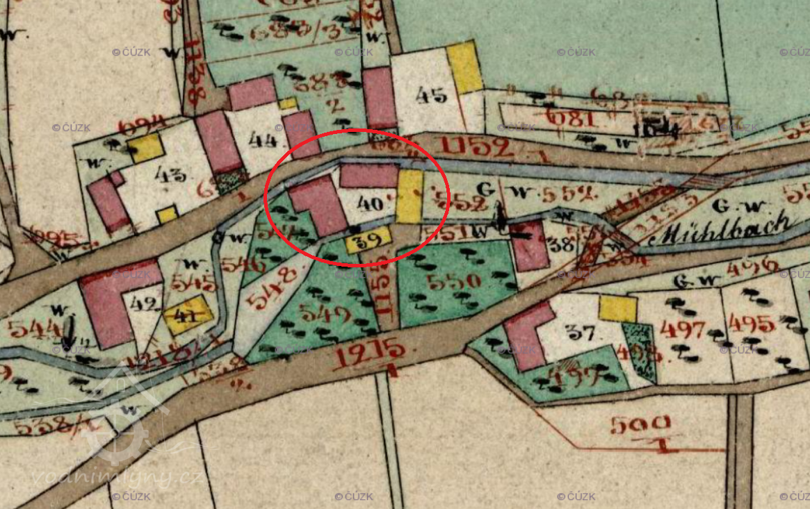 Popis1930: 1 kolo na svrchní vodu, hltnost 0,074 m3/s, spád 6,2 m, výkon 4 HP