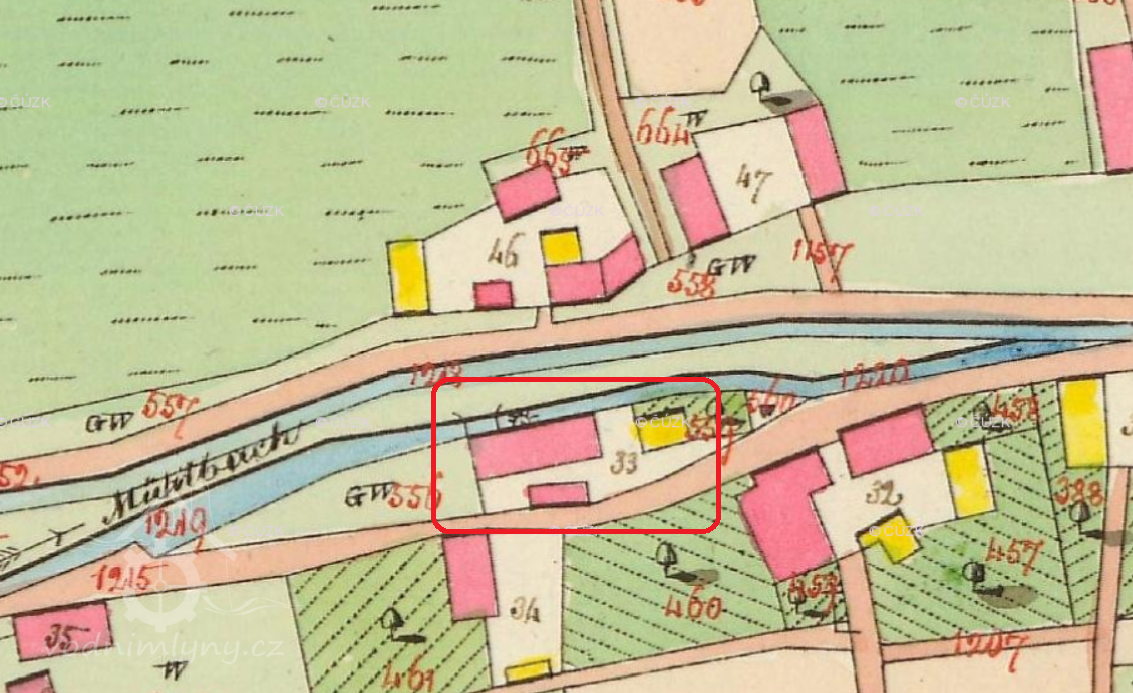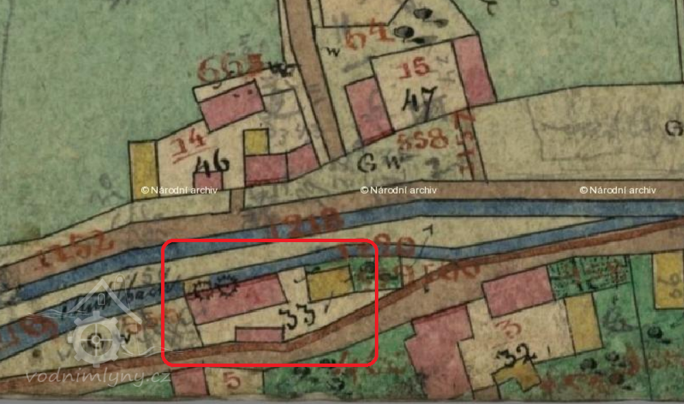 Popis1930: 1 kolo na svrchní vodu, hltnost 0,106 m3/s, spád 4,3 m, výkon 4 HP