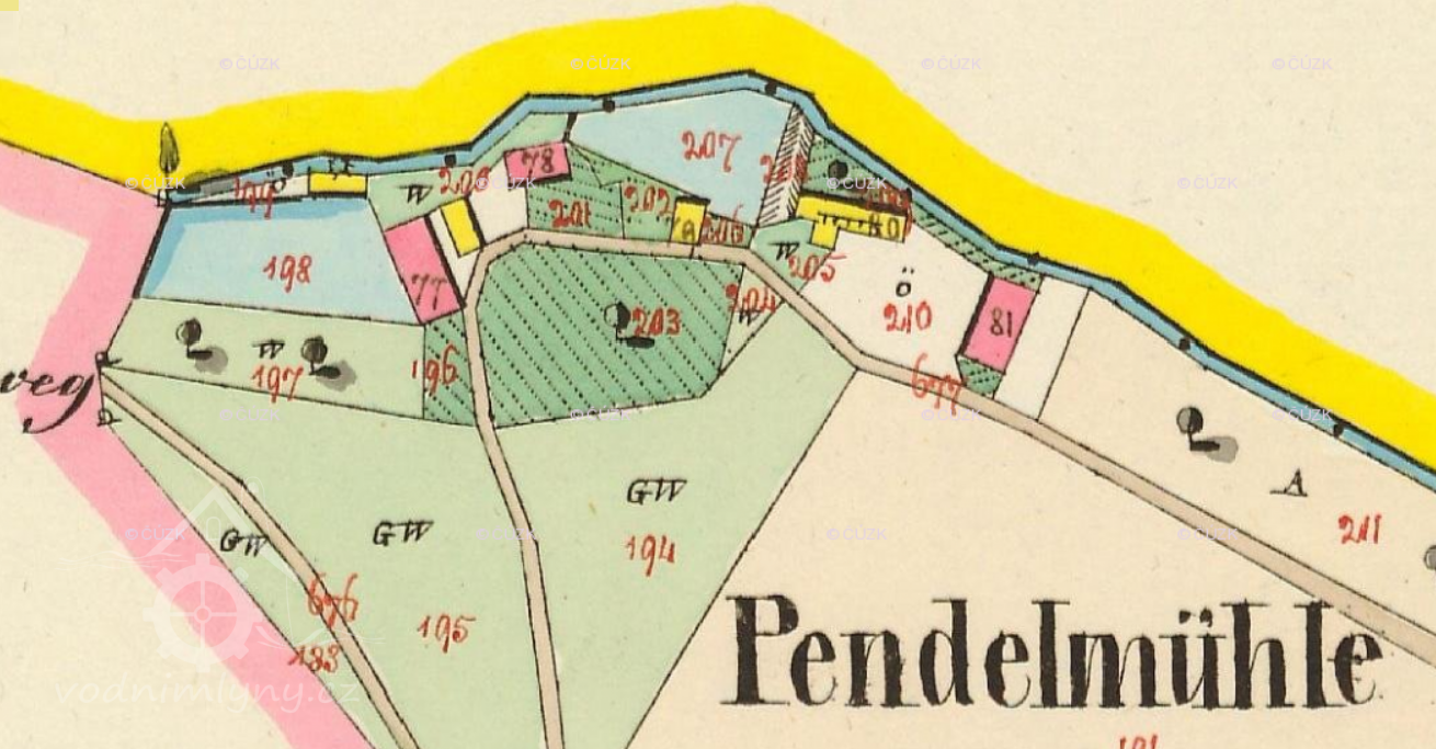 Popis1930: 1 kolo na svrchní vodu, hltnost 0,65 m3/s, spád 7 m, výkon 4 HP