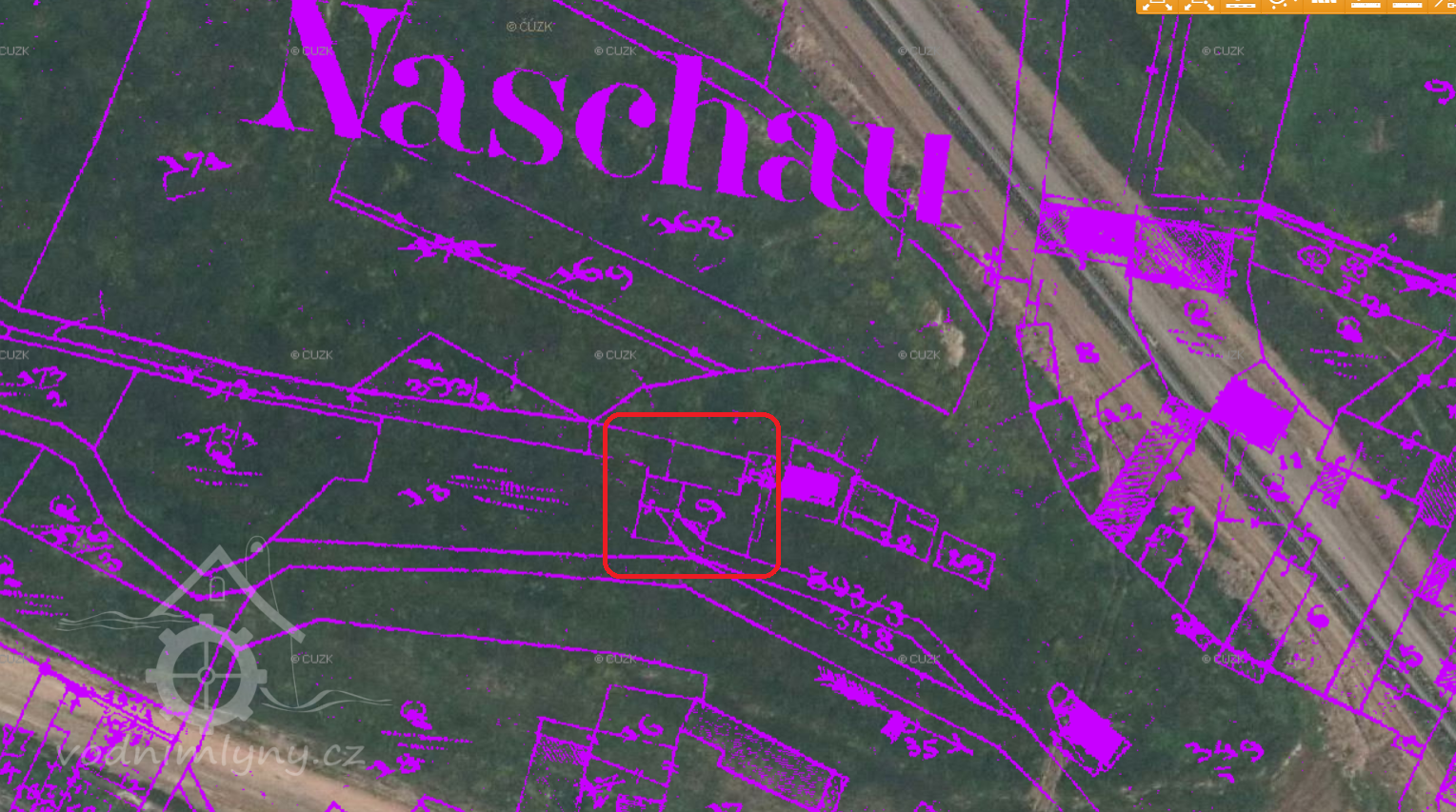 Malý mlýnek na návsi v Naší, zanikl s celou vesnicí v letech 1981-1982 při rozšiřování hnědouhelného lomu Nástup.