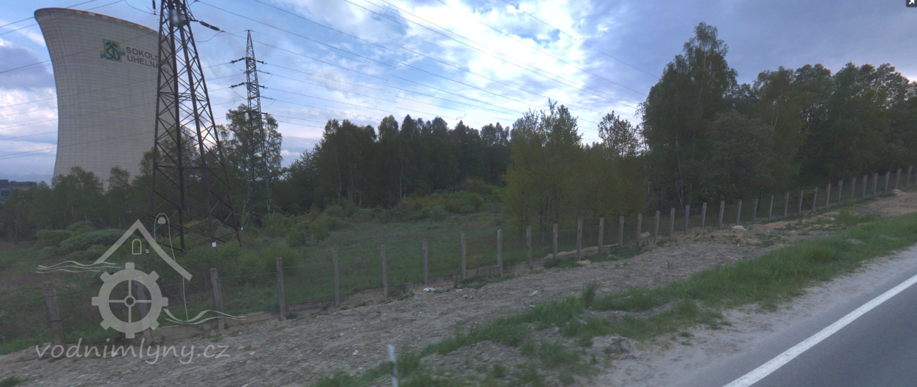 250 m západně od chladící věže elektrárny Vřesová