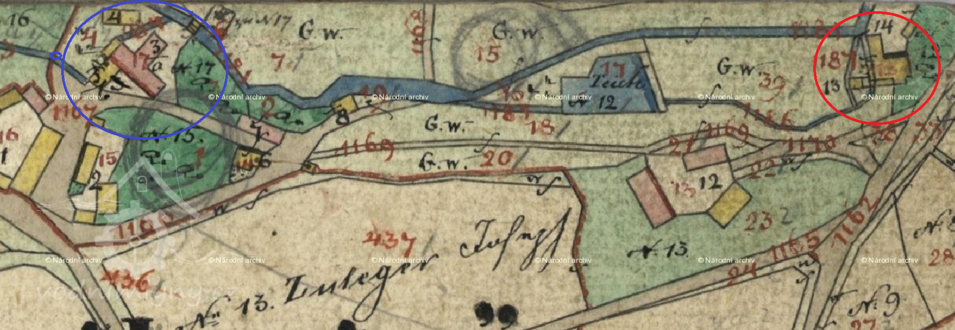 Popis1930: 1 kolo na svrchní vodu, hltnost 0,07 m3/s, spád 5,2 m, výkon 3 HP