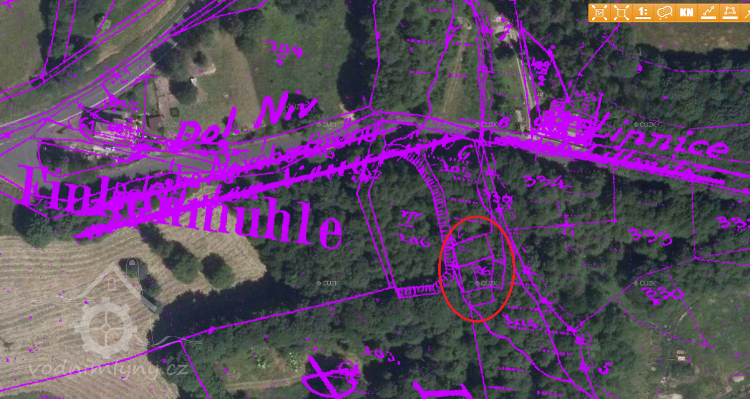 Popis1930: 1 kolo na svrchní vodu, hltnost 0,06 m3/s, spád 4,5 m, výkon 2,3 HP