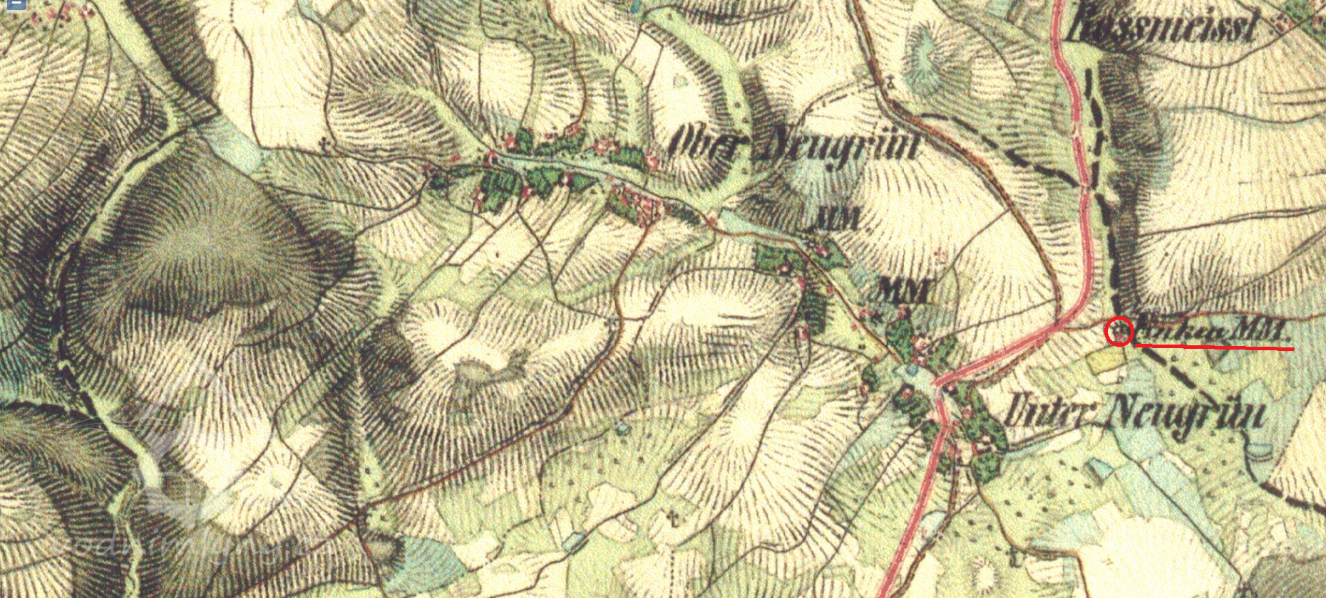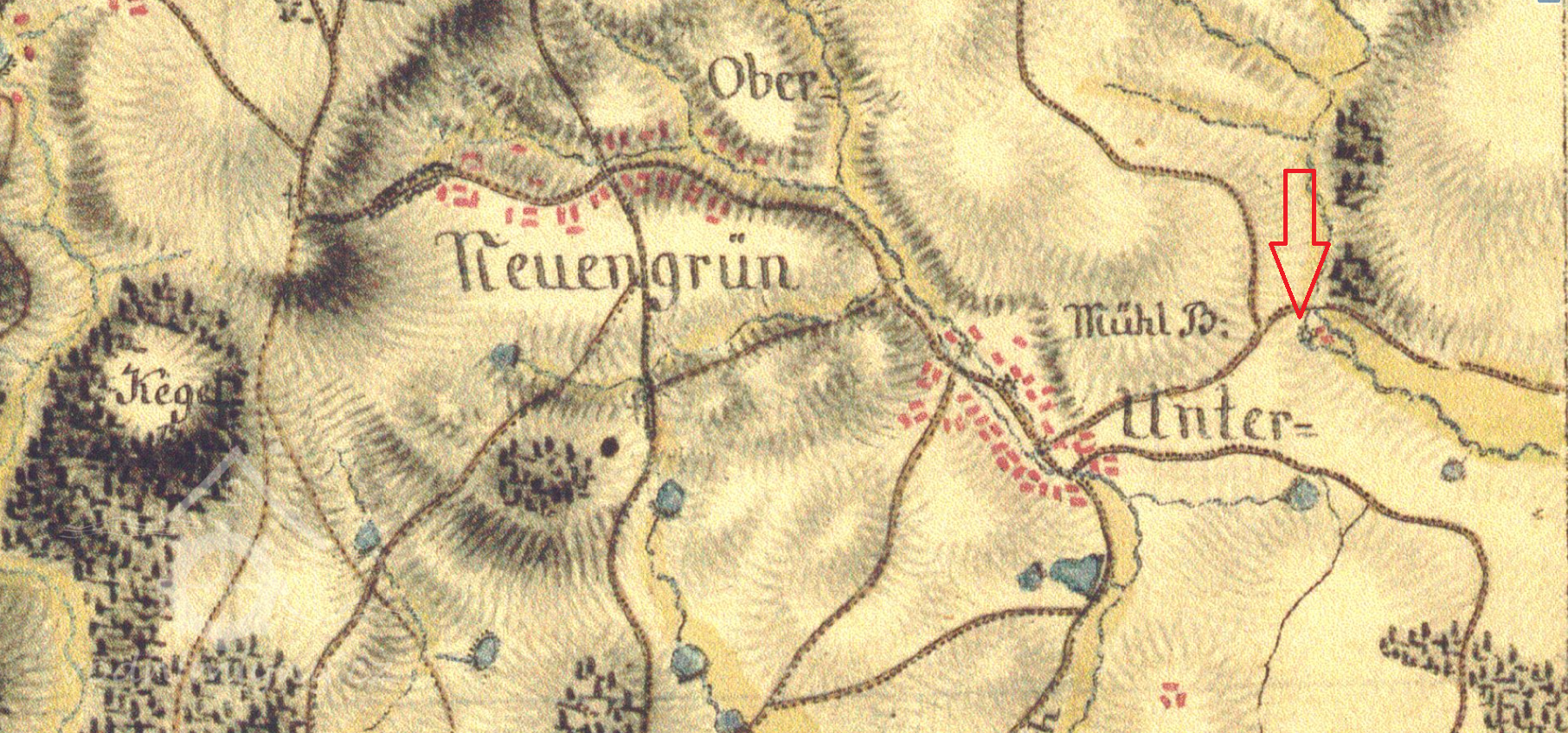 Mlýn na samotě východně od Dolních Niv, zpustl patrně po II. světové válce, v roce 1952 byl již ve zříceninách.
