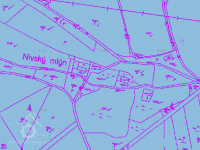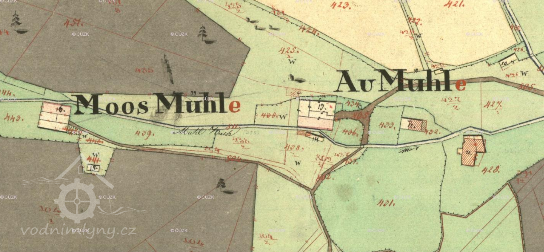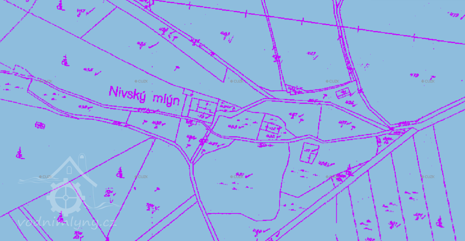 Větší mlýn, pila a elektrárna na samotě severně od Kyselova, po roce 1952 zatopen vodou Lipenské přehrady.