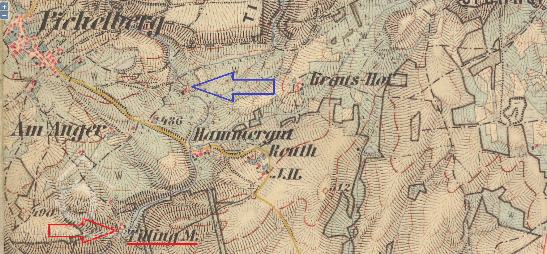 Menší mlýn u obce Boučí (Pichelbergu), zanikl při rozšiřování hnědouhelného lomu Jiří.