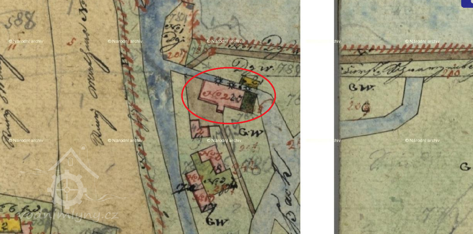 Popis1930: 2 kola na svrchní vodu, hltnost 0,175 m3/s, spád 4 m, výkon 6 HP