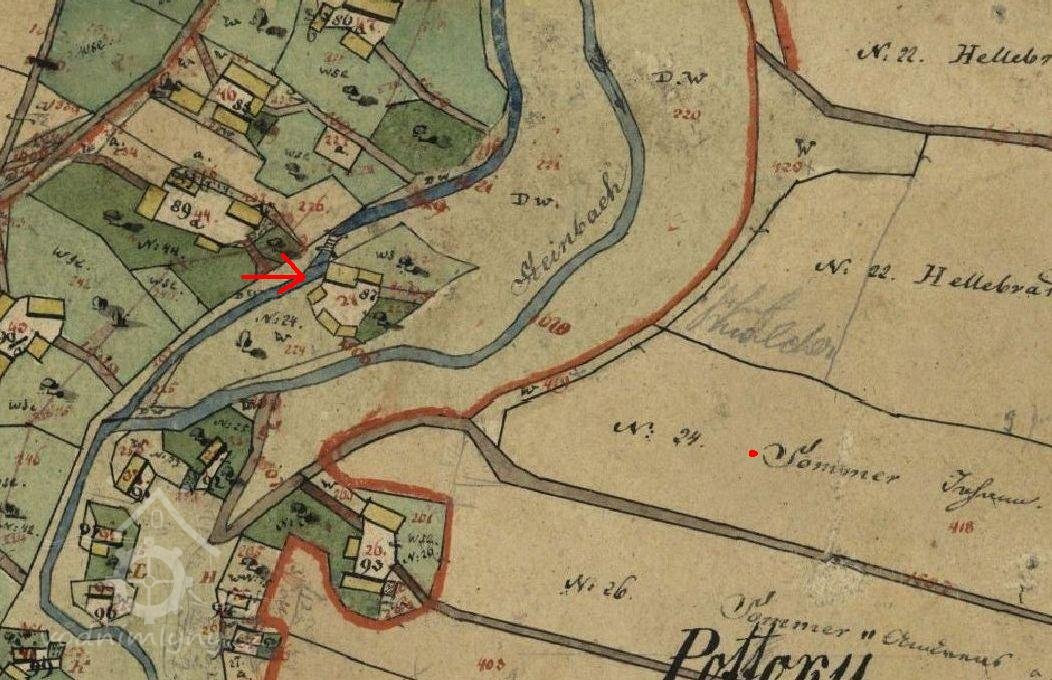 1738 Andreas Skrowanek, mlynář 36 let starý, vlastní malý dědičný mlýn ve vesnici o 1 složení a na trati Sedlisko 35 maldrů půdy.