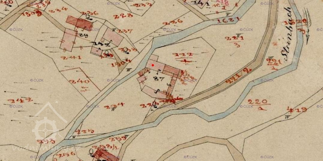 Popis1930: 1 kolo na svrchní vodu, hltnost 0,14 m3/s, spád 4,5 HP, výkon 5,44 HP