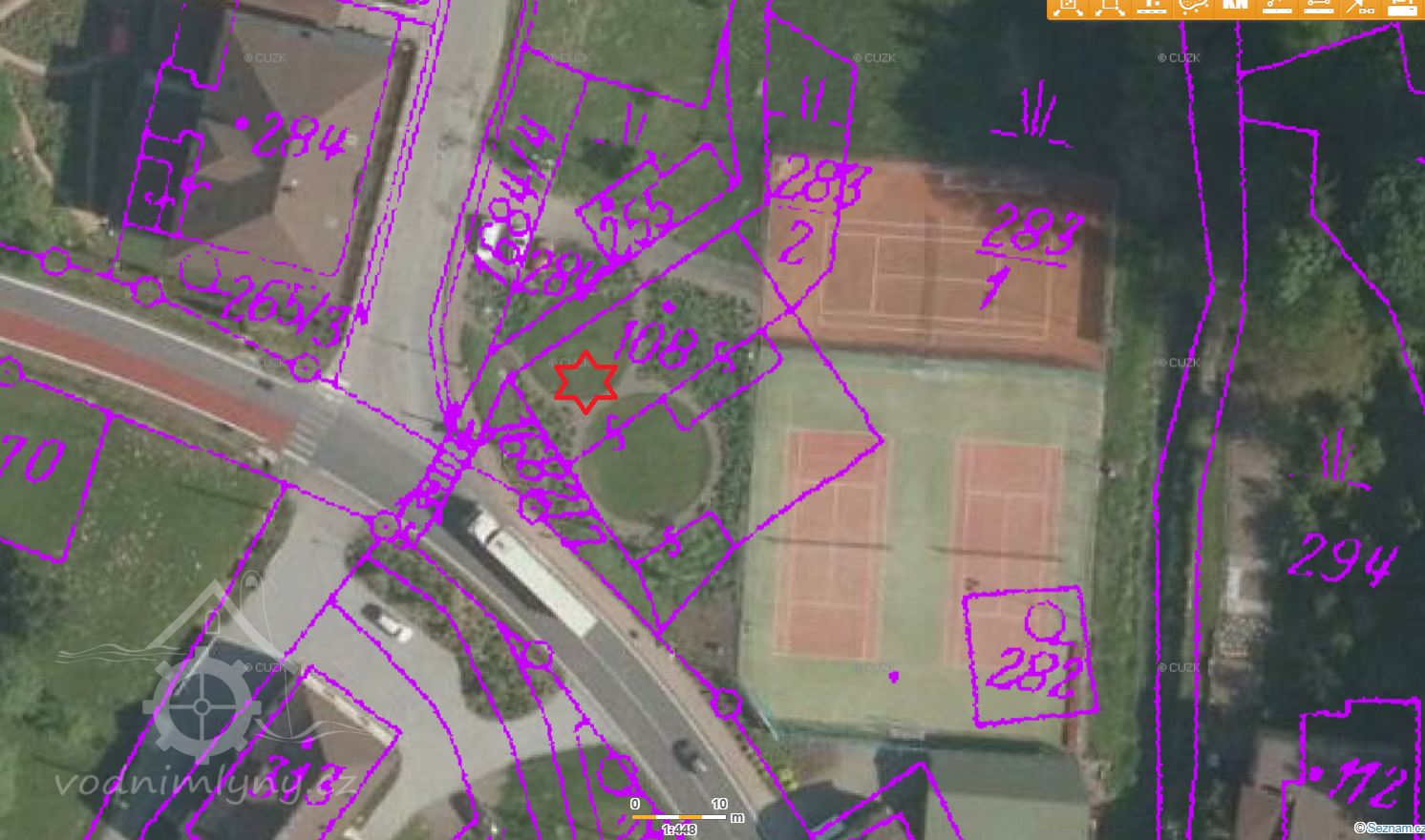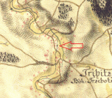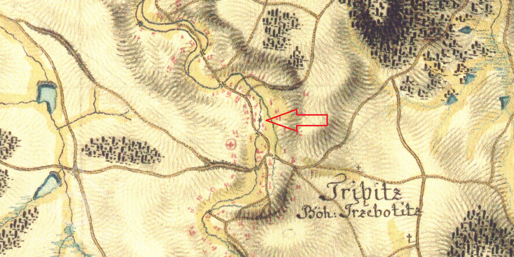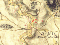 Zaniklý mlýn na návsi u kostela v Třebovicích, na jeho místě je dnes hřiště.