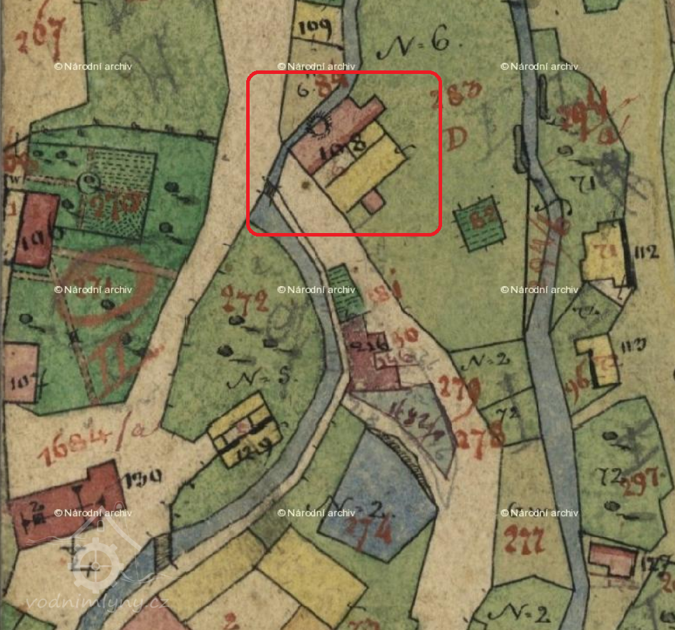 Popis1930: 2 kola na svrchní vodu, hltnost 0,288 m3/s, spád 2,8 m, výkon 7 HP