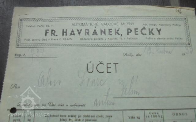 Závod byl založen v červnu 1915 Karlem Kosinou a jeho zetěm inženýrem Karlem Pokorným. Mlýn byl zařízen na kapacitu dvou vagonů za 24 hodin, postavila jej firma inženýra Karla Pokorného v Mnichově Hradišti. Po skončení první světové války přešel do vlastnictví pražského advokáta Františka Čeřovského a společníků, kteří ho v roce 1922 prodali bratrům Josefu a Františku Havránkovým z Olešky u Kostelce nad Černými Lesy. Noví majitelé při mlýně zřídili na krátkou dobu i velkopekárnu. Později jako majitel vystupuje jen František Havránek. Již roku 1919 bylo postaveno u mlýna skladiště, napojené vlečkou na železnici. Dnes jsou v areálu sklady a prodejny.