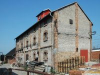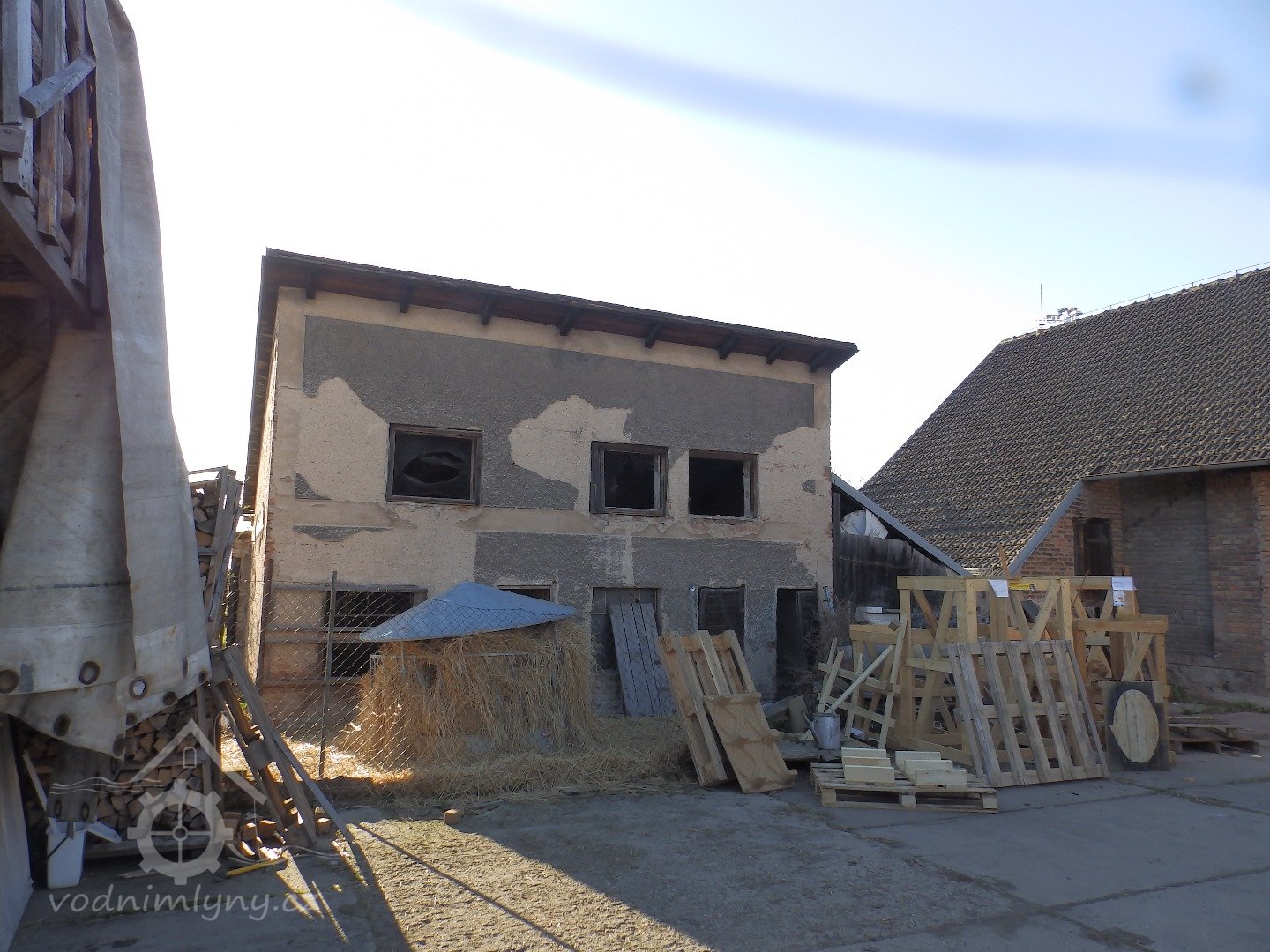 Jednoduchá industriální stavba na obdélníkovém půdorysu, u mlýna obytná vilka a tzv. rotunda.