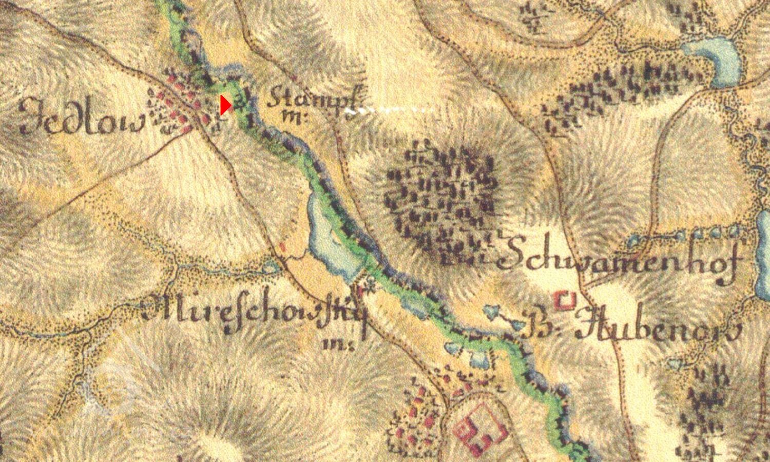 Vraťme se však k počátkům mlýnů. V úvodu knihy jsme psali o tom, že už za Přemysla Otakara II. před r.1278 existoval mlýn při ústí Jedlovského potoka do řeky Jihlavy (později zvaný Pekárkův, na kraji Dvorců; ještě v době německé okupace to byl mlýn s přikázaným mletím pro Mirošov a Jedlov, po válce zrušený). R.1390 se uvádí na arcibiskupském řečickém panství 28 mlýnů (3 v Rychnově, 2 v Dolní Cerekvi aj.), navozuje to myšlenku, proč by nemohl v následující době vzniknout i mlýn v Mirošově, jehož dlouhou hranici tvořil právě Jedlovský potok.