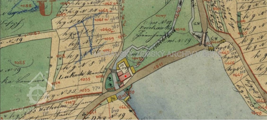 Dějiny se přehouply do století sedmnáctého a odtud jsou známa jména majitelů domů a polností z Lánových rejstříků. Z tohoto soupisu vyčteme, že v Kostelci mlynář Wentz /Müller/, hospodařil na 6 polích o výměře 11 měřic, zařazených do 3.třídy, což byla jednoznačně nejchudší polní výměra v tehdejší vesnici, ale v roce 1665 předal mlýn o jednom složení jihlavské vrchnosti. Strohý fakt by se dal interpretovat tak, že mlýna se zbavil, ale na polnostech hospodařil ještě nějaký čas dále. V sedlačení se ovšem Wentzi Müllerovi rovněž nevedlo, neboť již při další vizitaci /Rektifikační akta 1667-1768,MZA Brno/ bylo 5 polí o 8 měřicích a třech osminách prodáno Mathesu Taublovi. Poznámka pak ještě říká, že jelikož u jiných držitelů byl zjištěn přebytek výměry a zde chyběly 2 měřice a pět osmin,je pravděpodobné, že si tento rozdíl sousedé přivlastnili. Wentz Müller tedy svůj majetek evidentně zanedbával a ochotně se ho zbavoval. Kde však stál jeho mlýn, nelze vyčíst ze sebemenší topografické zmínky. Taublovi prodané pozemky se nalézaly jednak na svahu Kosteleckého vrchu /Biegl/ proti Popicím, ale též při silnici do Nového Světa u Gasshublu vlevo od silnice a vpravo u bučiny /Buchwald/. Jisté je jen to, že hospodářský objekt na Gothově louce /a někdejší vodní tvrzi/ postupně propadal zániku a zmenšoval se. Na katastrální mapě z let 1778- 1782 je v tomto místě zakreslen jen velmi malý domek a na mapě jihlavských panství 1811 nebo na mapě stabilního katastru 1835 jakýkoliv objekt chybí. Jeho podchycení provedla až stavba železnice a poslední prokopání v roce 1926,a tehdy si také kostelečtí sousedé rozebrali postupně poslední zbytky zdiva z této lokality na své vlastní stavby.