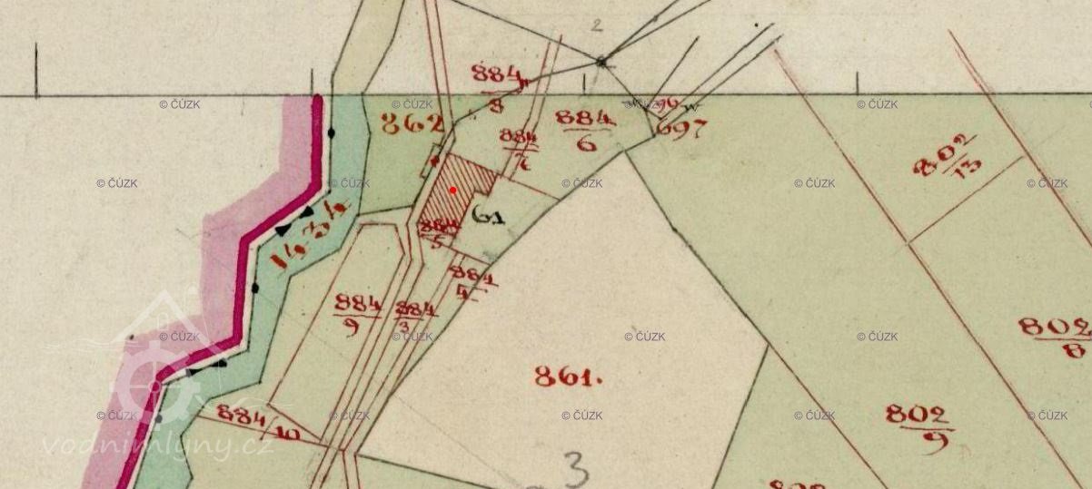 Současný jez k mlýnu nepatřil, náhon na mlýn přicházel od Předbořic