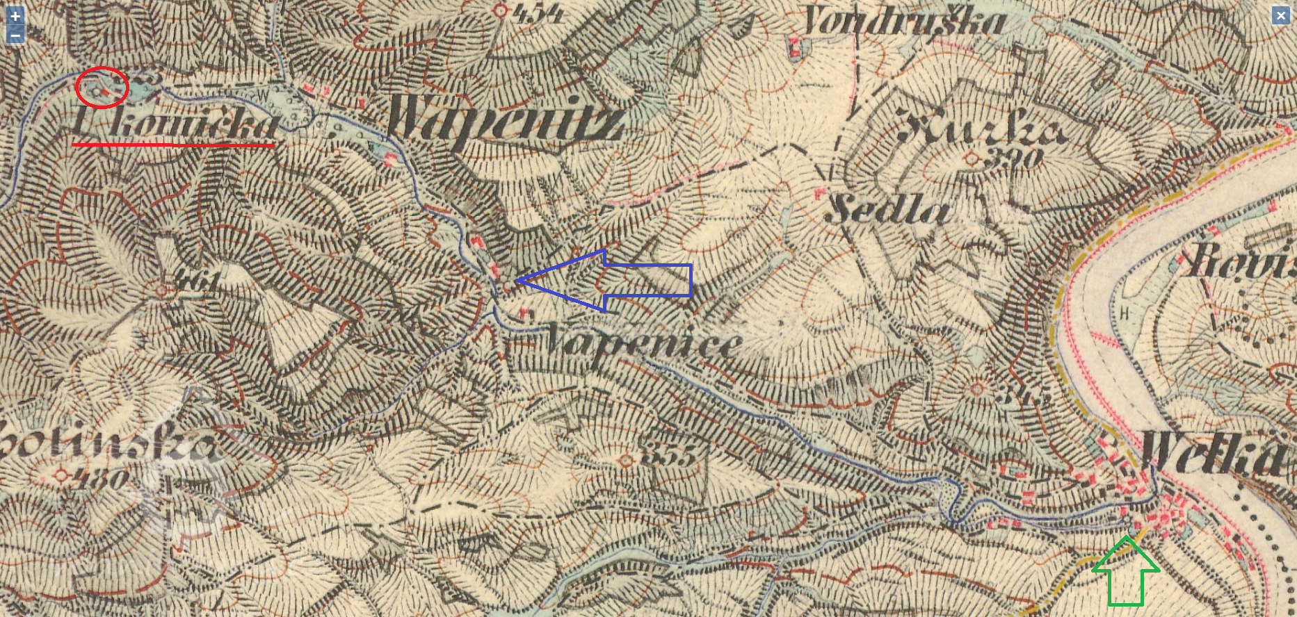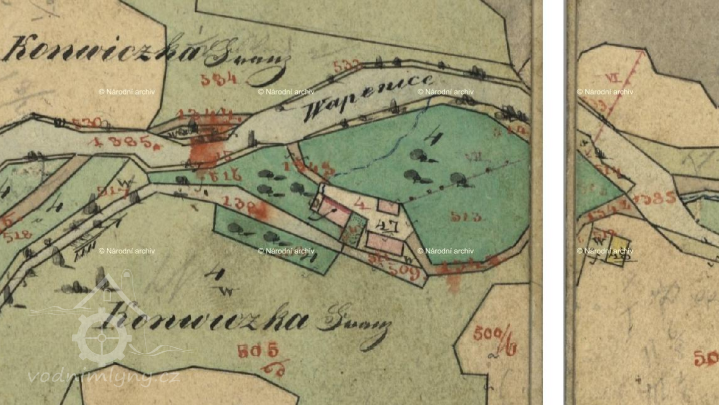 První mlýn ve Vápenici, v posledních letech zahájena oprava či přestavba, nezdá se však, že by se v ní pokračovalo.