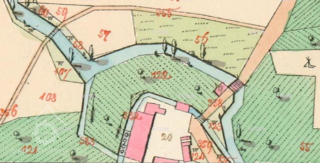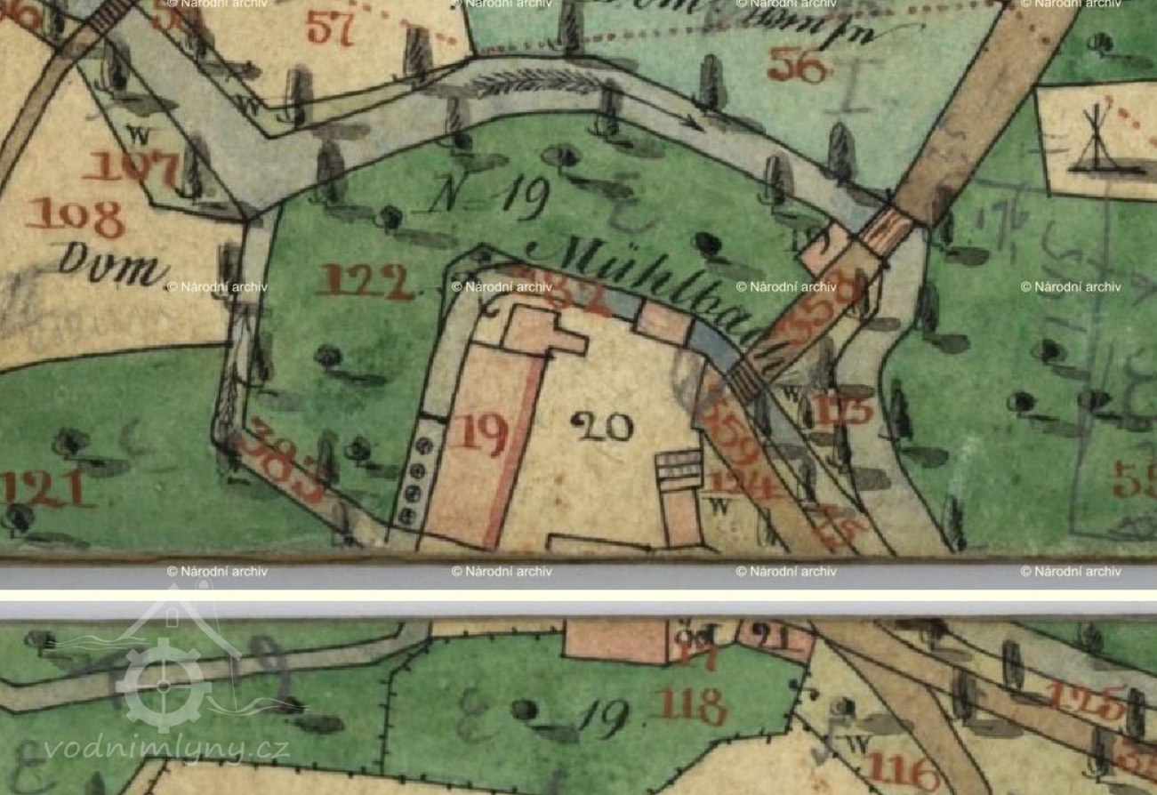 Velký mlýn dvorcového typu na samotě západně od obce. Po II. světové válce pustl a byl postupně demolován, dnes dochovány pouze zarostlé základy mlýnice.