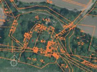 Budovy původně rozmístěny kolem rozlehlého uzavřeného obdélníkového dvora.