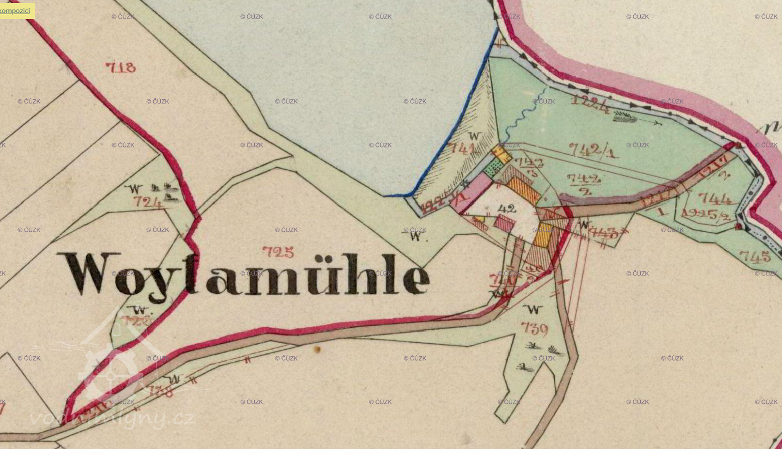 nájemce mlynář Vojtěch Šrajer, podle něho název Vojtův