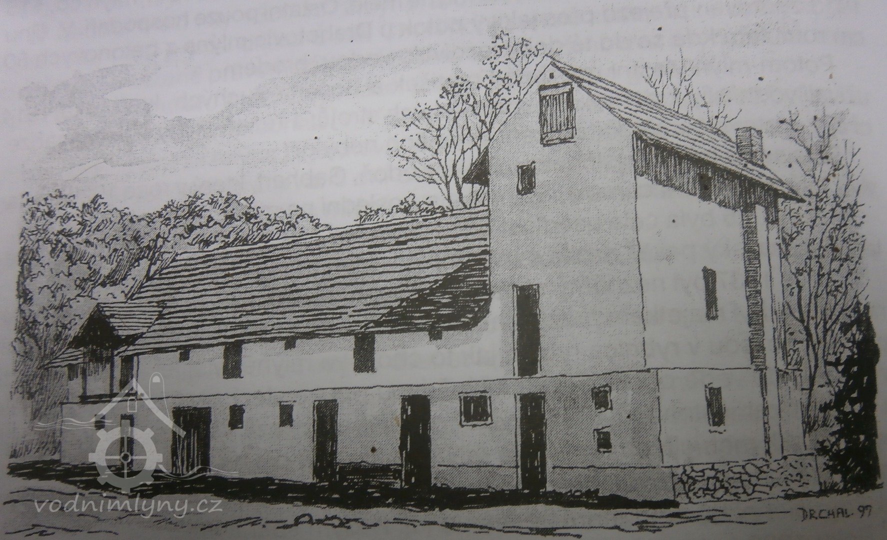 1895: mlýn Václava Ondráčka stojí po levé straně mlýnského potoka, který do nádržky vtéká a ze kterého voda přímo na vantroka, ketrá podél západní strany mlýna umístěna jsou, vede. Po pravé straně lednice, která s mlýnem souběžně stojí, je postavena pila. Zasazení normálního cejchu bylo provedeno 27. června 1895. Mlýn má dvě složení, poháněná dvěma vodními koly a pila jedním kolem na svrchní vodu. Přede mlýnem je nádržka, z níž vantroky voda na kola prostřednictvím stavidel se přivádí. Stavítko pro pilu je při dnu vantrok zřízeno v pravé postranici. Níže se nalézá v pravé postranici vantrokový přepadový splávek. Na konci vantrok v čelním bednění dvě stavidla. Přítok vody k mlýnské nádržce reguluje se stavidlem.
