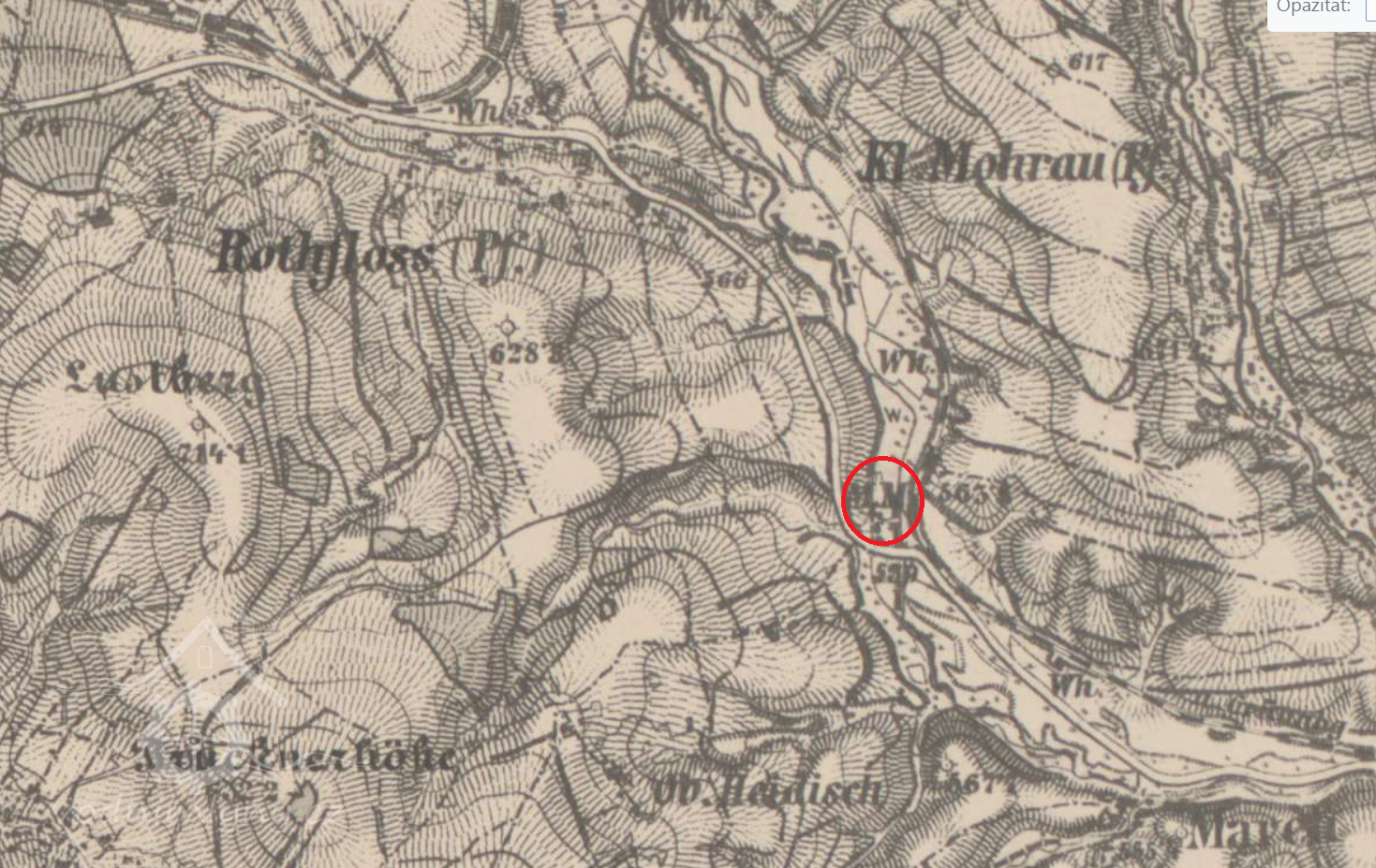1,65 km jv od kostela Navštívení P. Marie v Červeném Potoku