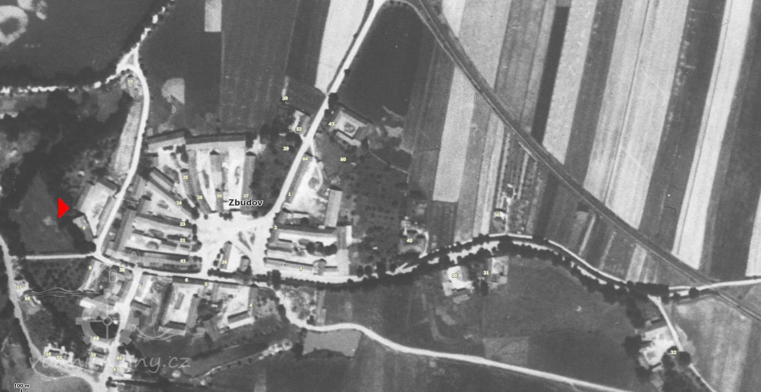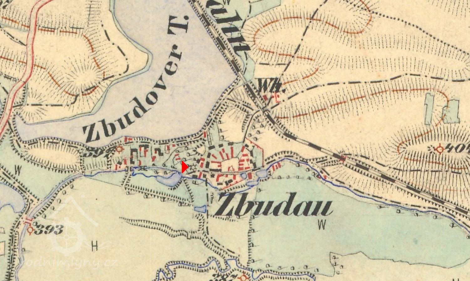 Areál mlýna původně ze 17. století, přestavěný na patrový válcový mlýn s Francisovou turbínou v první polovině 20. století, se nachází na západní straně vsi pod hrází Zbudovského rybníka.