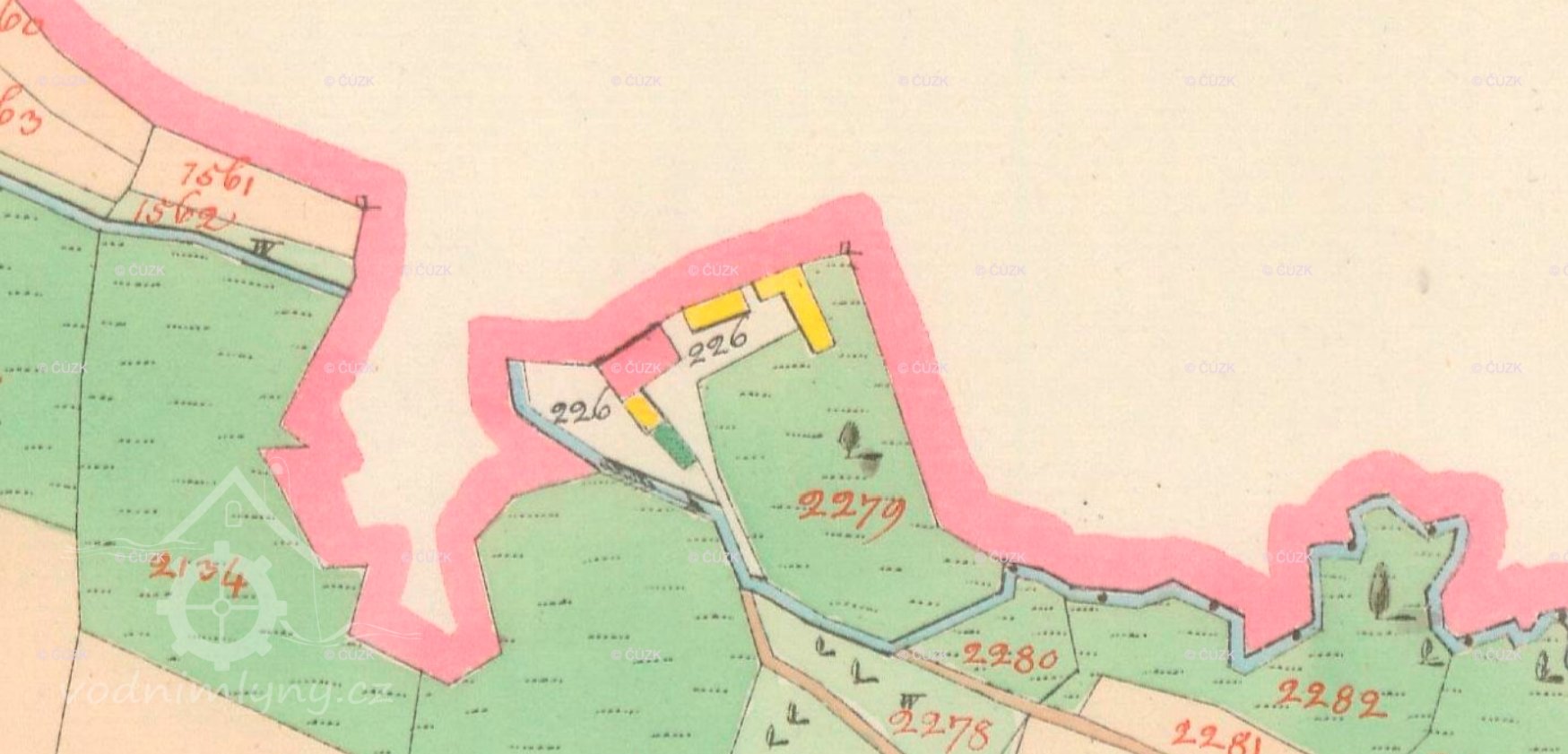 "Celý mlýn je patrně z kamene a omítnutý až na mlýnici, která je z velkých pískovcových kvádrů a roubené komory, přistavěné ke kuchyni.....Mlýn je v odlehlém údolí bez spojení s obcí pevnější cestou a mostkem."