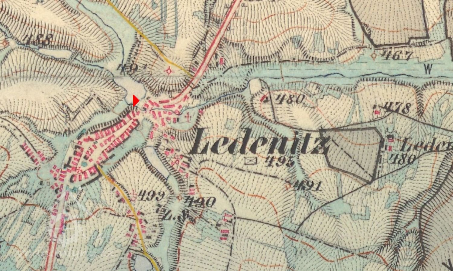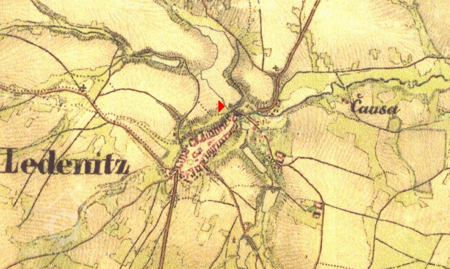 Na severovýchodní straně Ledenic pod hrází rybníka Lazna