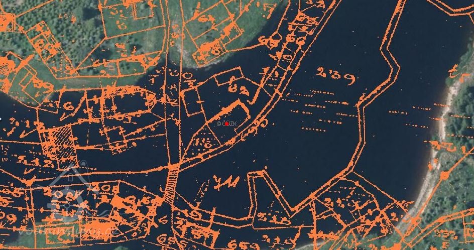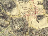 1963 zatopen přehradní nádrží Fláje, předtím zbořen