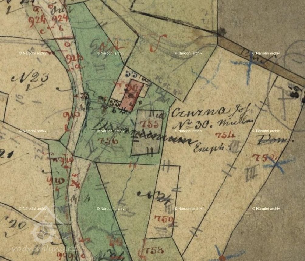 Sčítání lidu 1900: mlynář František Hanuš (nar. 25.10.1853 Žernovice) - na mlýně od 1890, manželka Anežka (nar. 1860), děti Terezie (nar. 1894), Stanislav (nar. 1895), Marie (nar. 1897), Josef (nar. 1900), švagrová Marie Krotká.