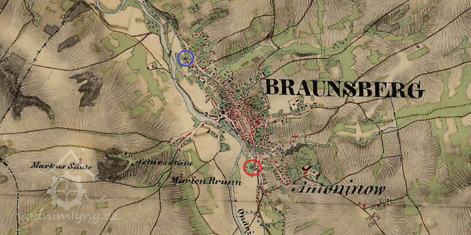 Dolní mlýn v Brušperku, zanikl po zrušení náhonu v roce 1913, dnes rozdělen na dva rodinné domky.