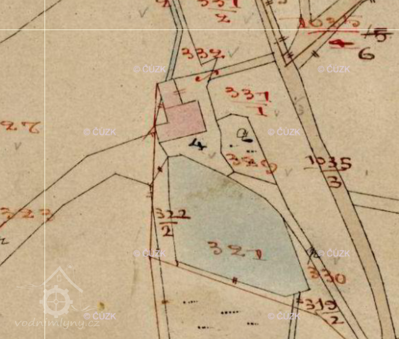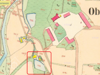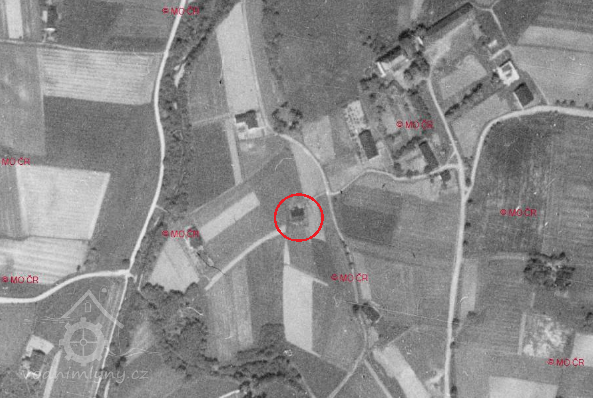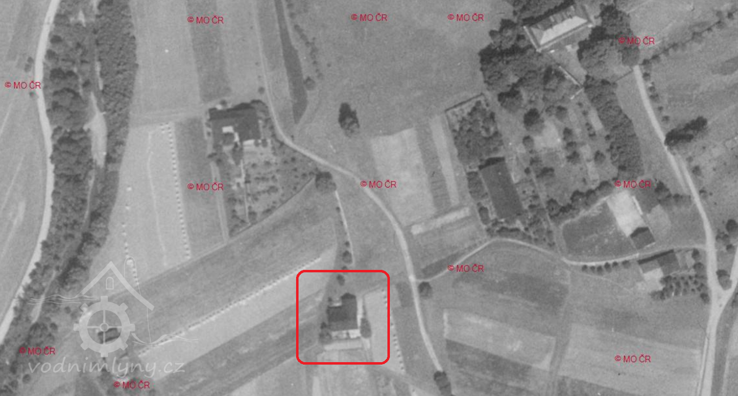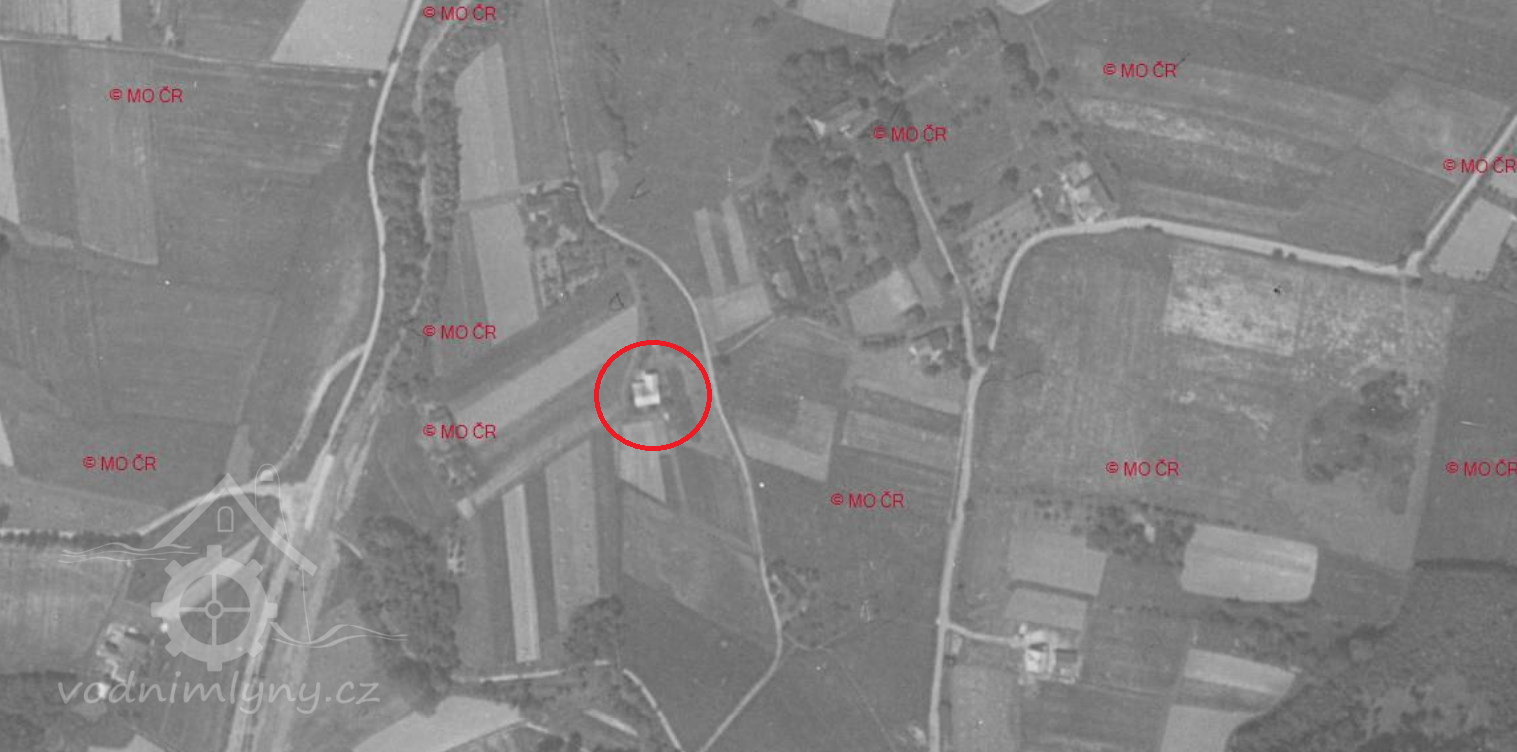 Zaniklý mlýn pod rovněž zaniklým zámkem.